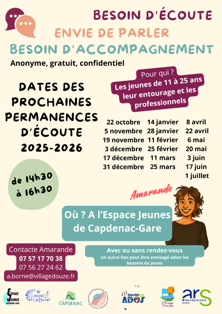 Permanences du Point d’Appui et d’Ecoute Jeunes / à l’Espace Jeunes